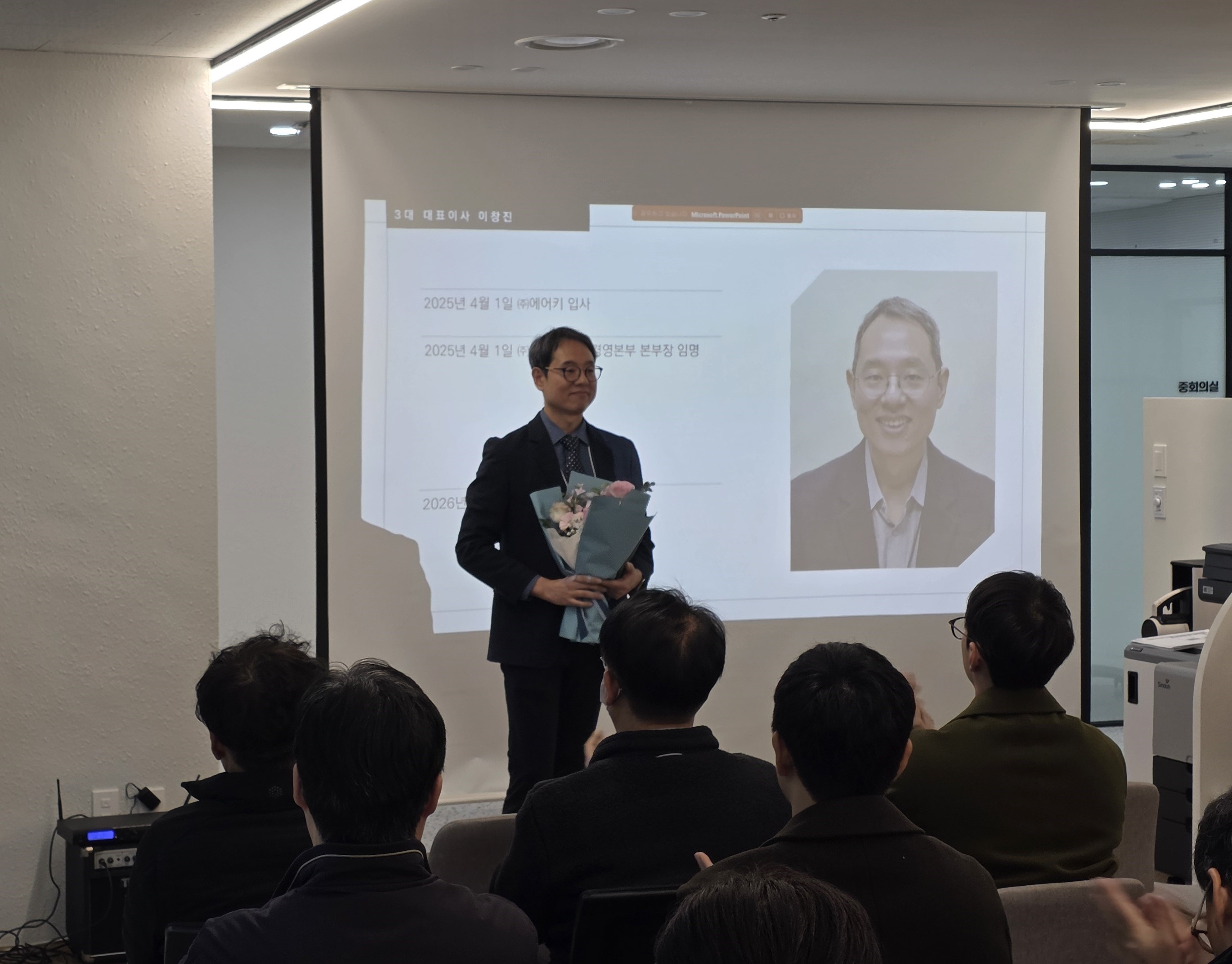 2021년 10월부터 에어키를 이끌어주신 조태영 사장님의 퇴임과, 이창진 신임 대표이사님의 취임 행사가 오늘 오전 에어키 본사에서 진행되었습니다.